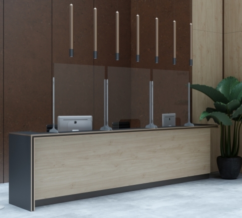 Suitable for a myriad of solutions, from admin desks to POS stations, the free-standing Safe-T screen uses upright metal brackets that allow it to maintain a sleek and simplistic design while maximizing stability.