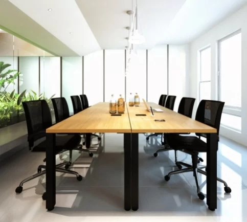 Fabricated 14 gauge steel with threaded inserts for levelers. Post mounts flush with table corner.