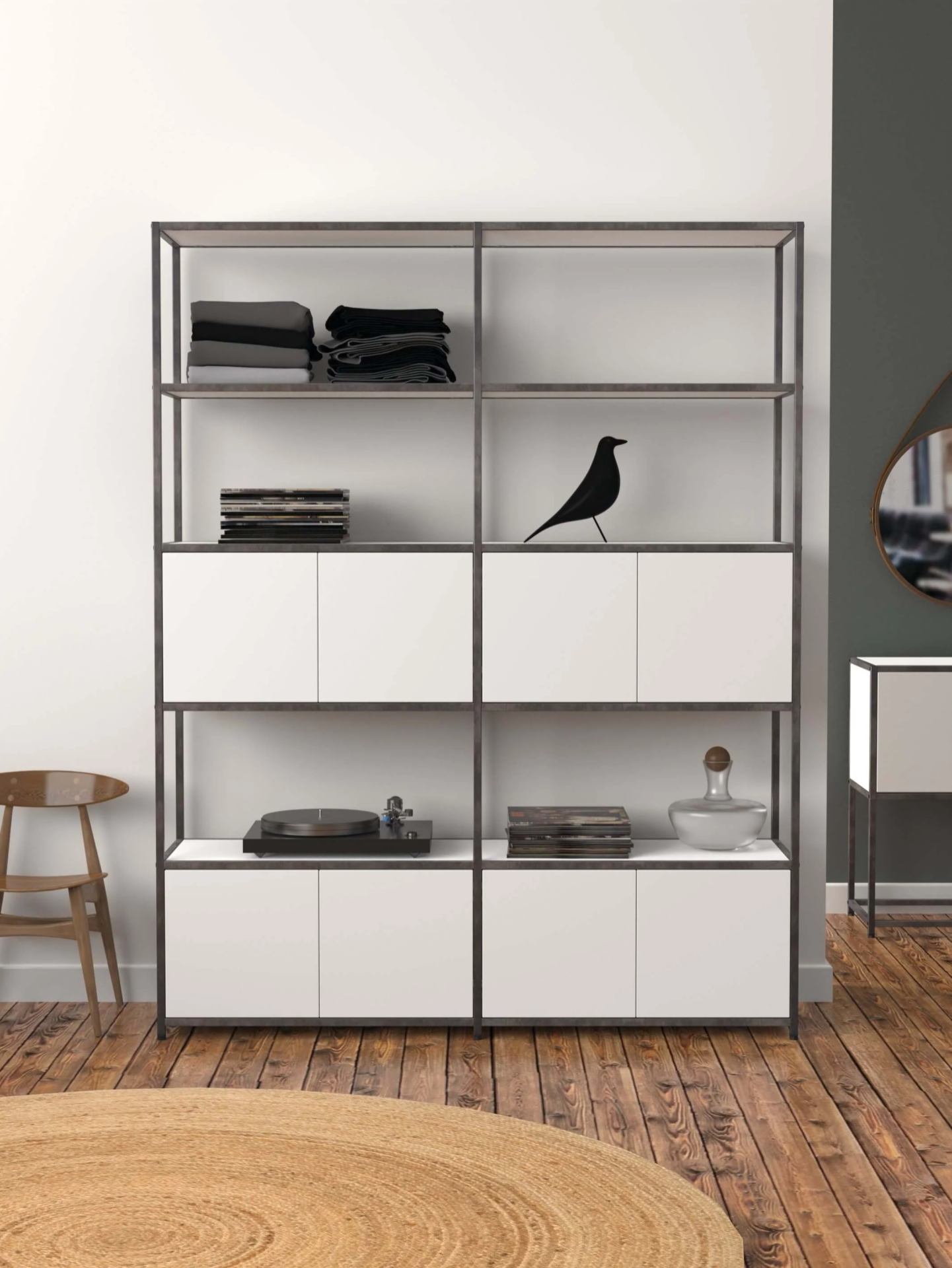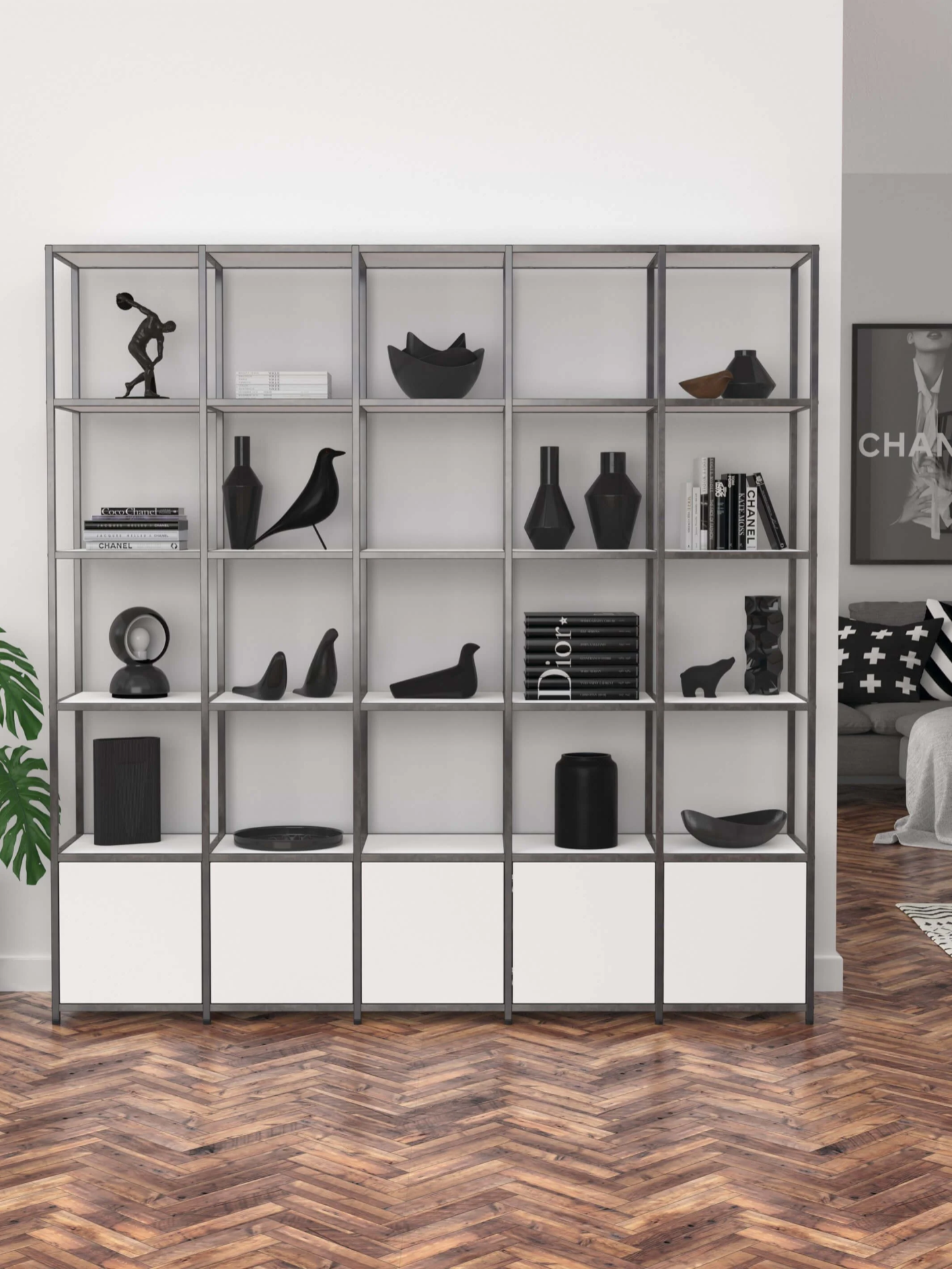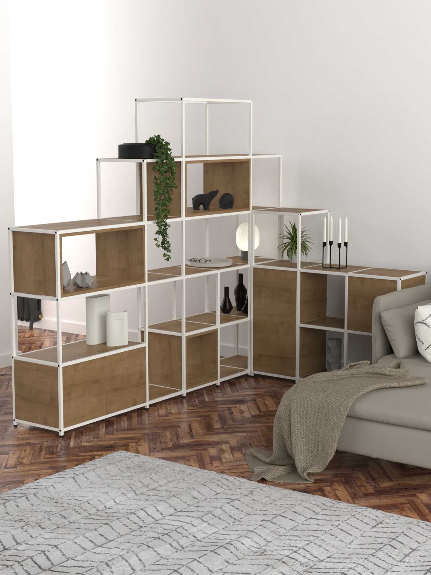 Mosaic Modular Shelving is built on a 40×40 cm grid, letting you create a sleek, space-saving solution tailored to your needs. From statement displays to cable-managed storage or office dividers, its compact footprint never compromises functionality.