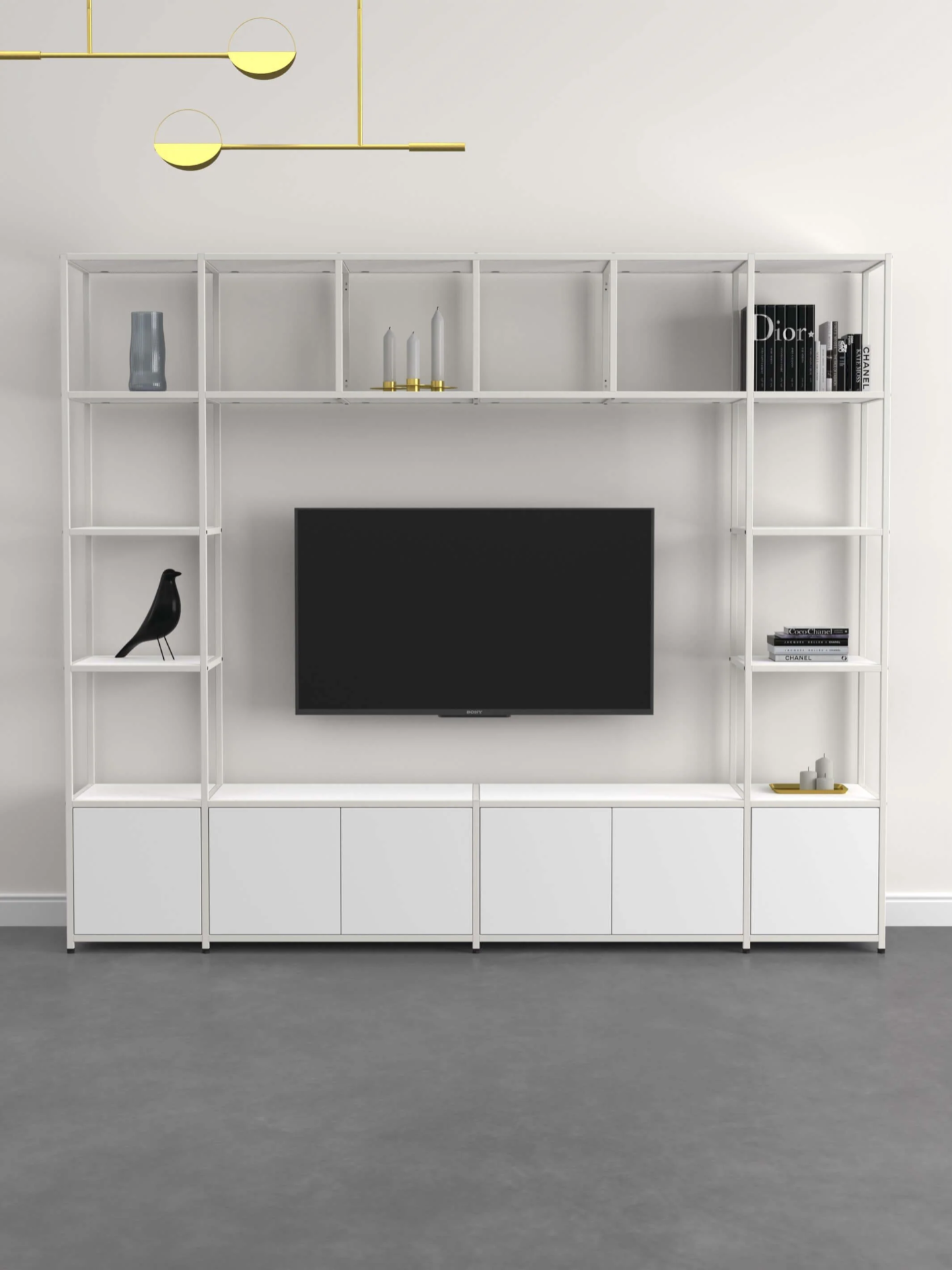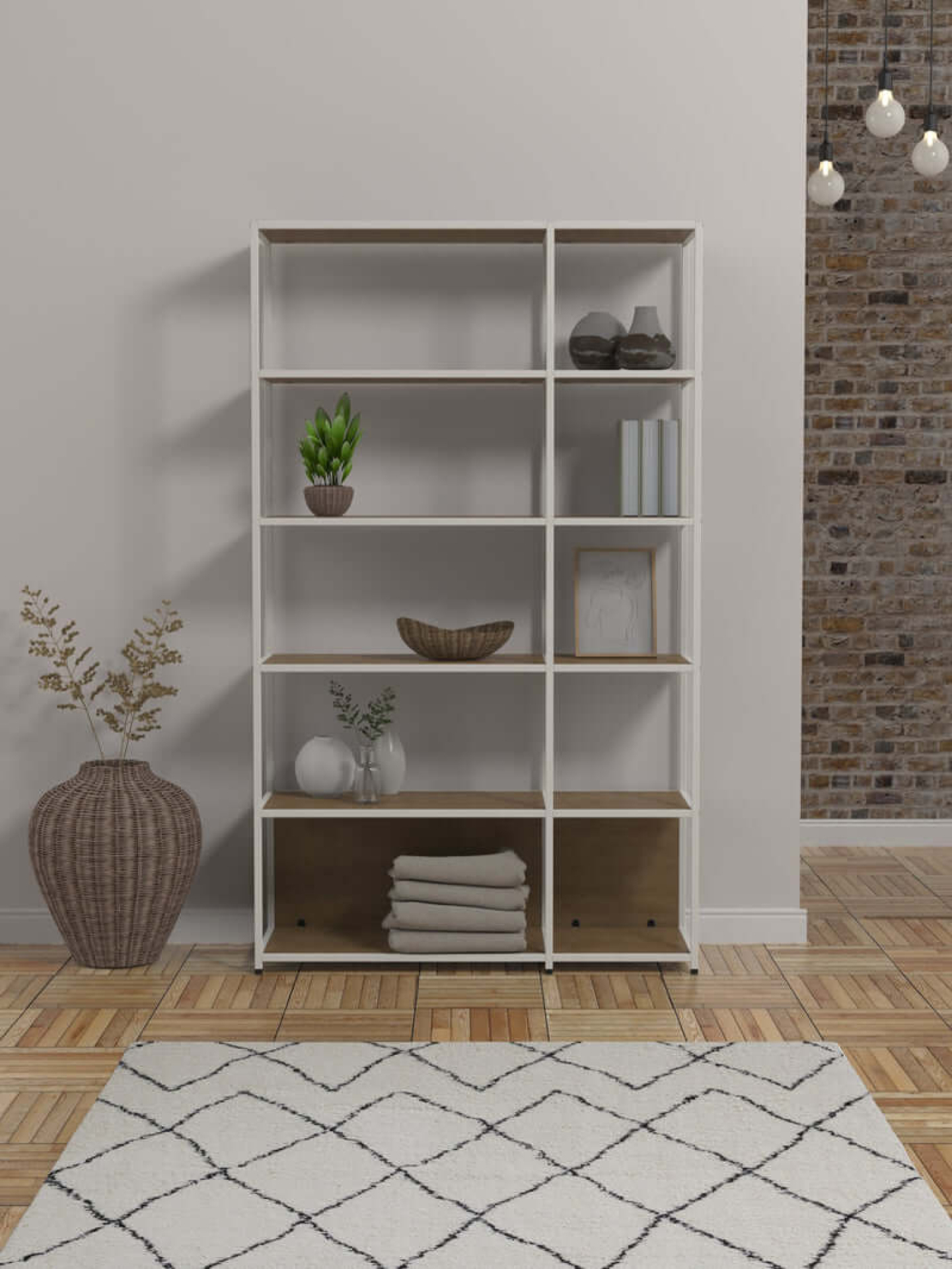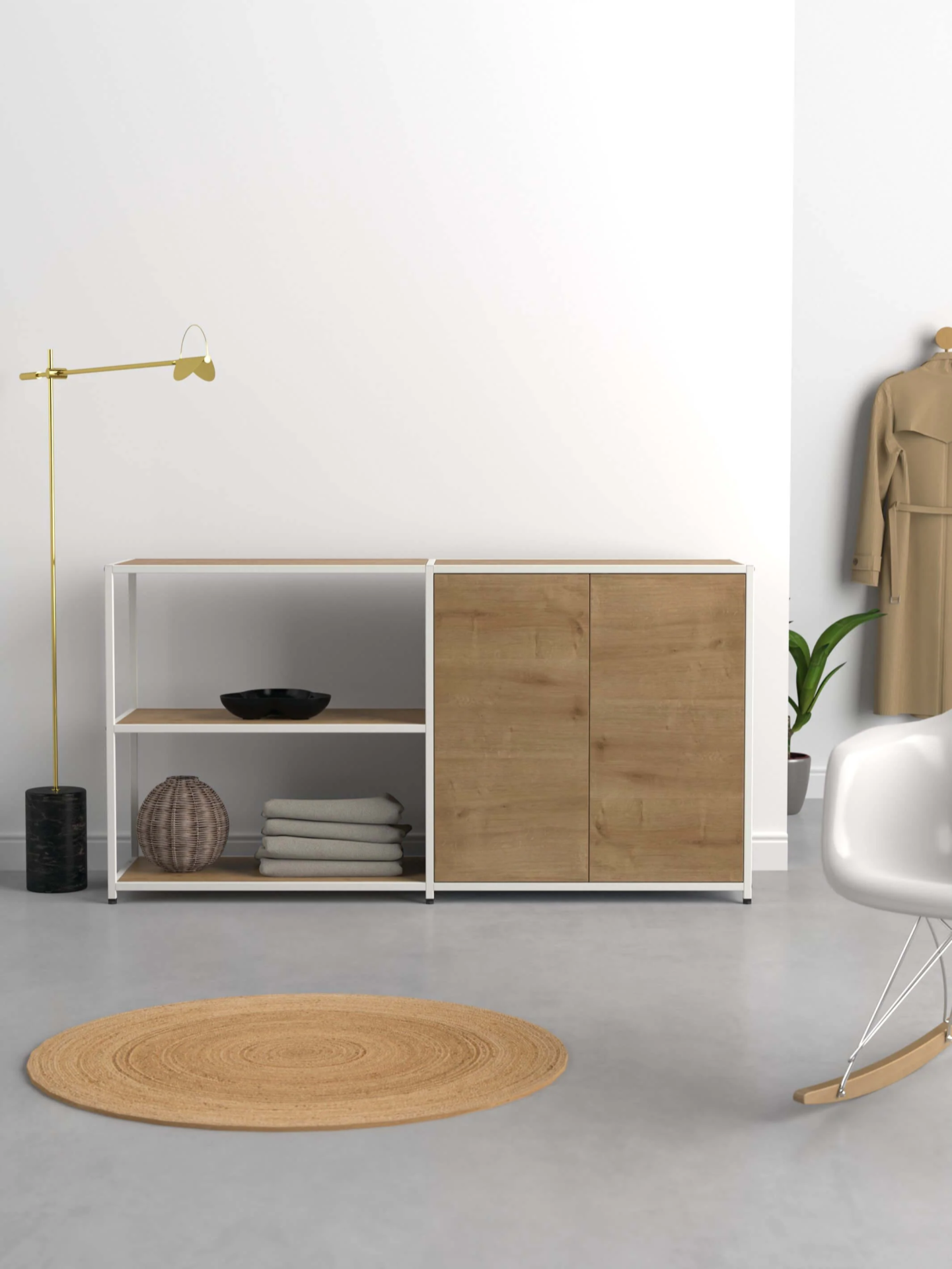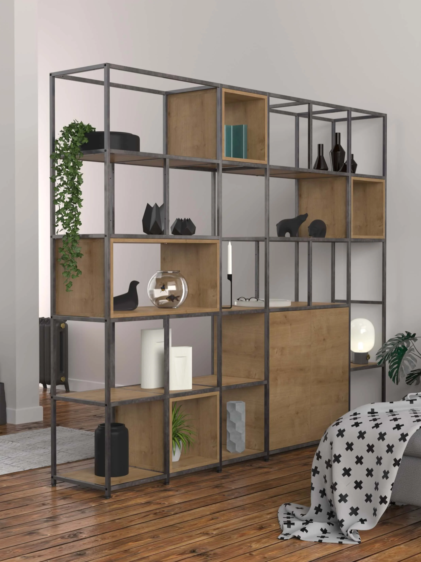 Mosaic Modular Shelving is built on a 40×40 cm grid, letting you create a sleek, space-saving solution tailored to your needs. From statement displays to cable-managed storage or office dividers, its compact footprint never compromises functionality.