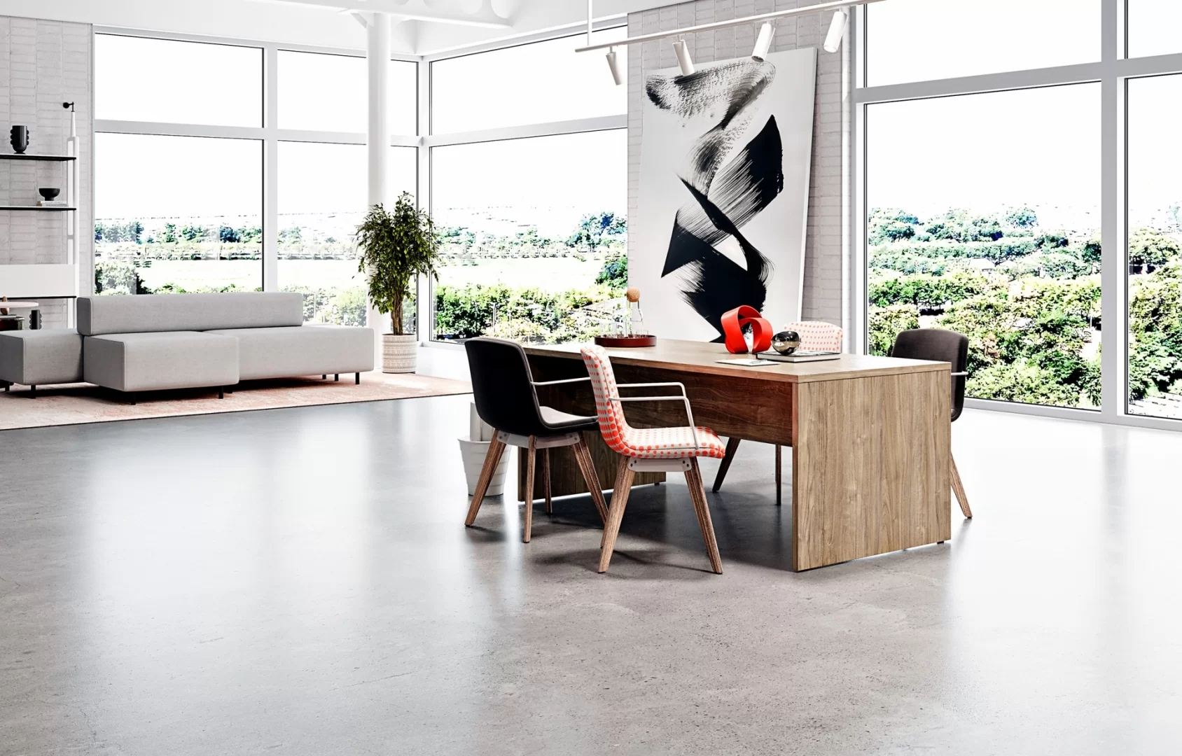 Enhance meeting areas with a comfortable and contemporary Plural table. These functional tables are built to last and offer convenient options for meeting and working areas.
