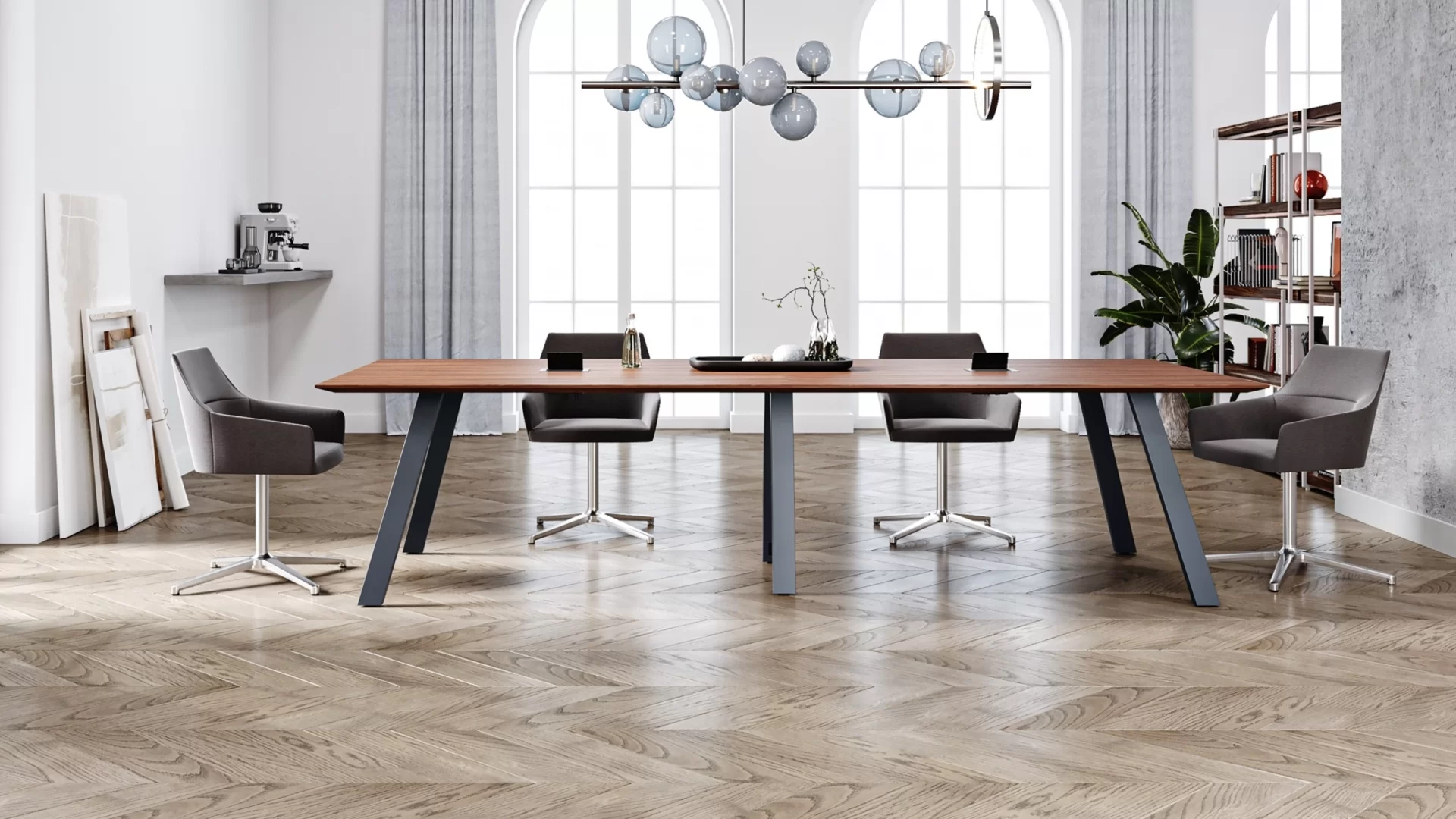 AIM XL table celebrates an attractive modern design suitable for a variety of interiors and delivers a high level of sophistication to any space. It bridges the gap between the traditional work spaces and a new generation of workers who are on the move throughout the day to focus on their work in a private setting, collaborate in groups, or connect in informal gathering areas. AIM XL supports the need for flexibility with three table heights, several shapes and sizes, premium casters, and versatile charging options.