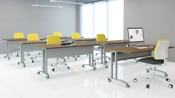 Structure Flip tables are both strong and elegant. Dual welded uprights bring stregth and durability and a clean arched foot adds a nice touch of design. Structure Flip tables work well as stand-alone tables for a variety of usues or can be ganged together for conference or training applications.