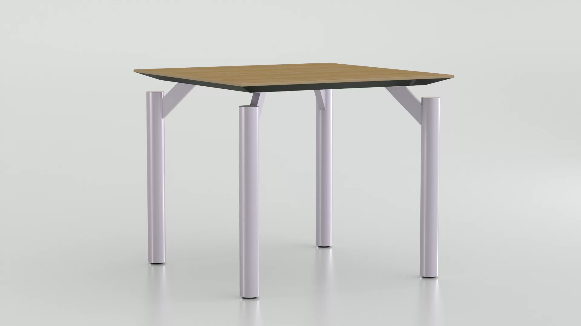 Designed for a "floating top" look, RLX1 features round metal legs welded to a steel support at a 45° angle.